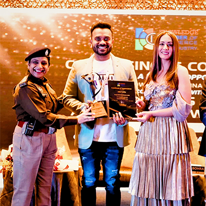 Awarded by : Preeti Jhangiani ((Famous Bollywood Actress) and Sunita Meena (Addl DCP Jaipur)